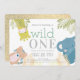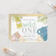 Vild 1 Zoo Animals Elephant Guld 1:a födelsedagen Inbjudningar