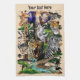 Afrikas Savanna Vilda djur sammansatt för att skapa en vacker naturbakgrund med: giraffe, rhinoceros, gazelle, elephant, zebra, krokodile, chameleon, leopard, Cheetah. Originalvektor Graphic Art Copyright BluedarkArt TheChameleonArt.