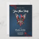 Vild, amerikansk skalle med baseball fladdermus. Skallen exuderar ett grymt uttryck, understruket av framstående tänder och jet-svarta öga socklar. Bakom skallen symboliserar två basebollhandtag fladdermus med skarpa brunhandtag kor varandra, styrka och beslutsamhet. Kombinationen av skallen, baseball fladdermus och flagga skapar en slående visuell beskrivning av frihet, uppror och amerikanskt pride.