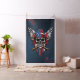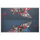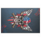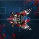 Vild, amerikansk skalle med baseball fladdermus. Skallen exuderar ett grymt uttryck, understruket av framstående tänder och jet-svarta öga socklar. Bakom skallen symboliserar två basebollhandtag fladdermus med skarpa brunhandtag kor varandra, styrka och beslutsamhet. Kombinationen av skallen, baseball fladdermus och flagga skapar en slående visuell beskrivning av frihet, uppror och amerikanskt pride.