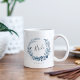 Anpassningsbar mugg har en blå och vit botanisk krans med "brud" inskriven i handskrivet skript. Anpassa med din bröllop-dejt under. Plocka upp en matchande uppsättning för hela brudens sida för en perfekt "hämta redo" foto på morgonen bröllop! Matching Budens mamma, Mor i Groom, Bridesmaid och Maid of honor mugg finns i vår Vild Azure-samling.