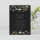 Den här vild blommigten svart brunch bubblande inbjudningskort för möhippan är perfekt för en modern möhippa. Utformningen har vattenfärgsblommor, blommor, lila-, marinblommor och vit elegant med emerald grönt löv i mörkens bakgrund.