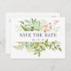 En Elegant Spara vykortet för datum med grönt för vattenfärgad vild med rosa blommor. Om du vill ha en mer avancerad anpassning av den här designen klickar du på knappen Anpassa ovan! Matchande objekt är också tillgängliga.