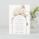 Den här bröllopsinbjudan innehåller färgat vattenfärgsprotea, torrt pampasgräs, vilda blommor, exotiska löv med en båge ram och en kamelbakgrund färg på baksidan. Om du vill ha en mer avancerad anpassning av den här designen klickar du på BLUE DESIGN VERKTYG. Matchande objekt är också tillgängliga.