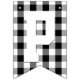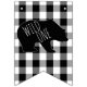 Trendiget vild för björn för skog för lumberjackplädmönster en första födelsedagsfestdekorbunting flags- den dimensionella looken för vit, retro stilbrev som läs "grattis på födelsedagen" över banret. Lantlig svartvit bakgrund för mönster för buffelkontrollpläd. Centrera och avsluta flaggor visar en svart björn skuggar, som läser "vild en" i primitiv stil, handskriven lookbokstäver. Populärt skogsmarkdjurtema, dekor för födelsedagsfest för skoglumberjack 1st. Vi har mer flaggor för bunting för björnlumberjackfödelsedag, såväl som koordinerande lumberjackfödelsedagsfesttillförsel i vår Zazzle.com/angela65* shoppar.
