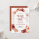Fet fiery terracotta och orange hues vild ett födelsedagsfest inbjudan, med en vildblomma ram och en fetstilt "vild ett"-typ. Terracotta längst bak i inbjudan. Könsneutralt.