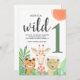 Detta söta första födelsedagsfest inbjudan är dekorerat med hand plockade vattenfärgsdjungeldjur, giraffe, tiger och lejon omgiven av tropiska löv. Anpassade enkelt med dina uppgifter. Eftersom vi skapar vår egen teckning kommer du inte att hitta just den här bilden från andra designers. Ursprunglig vattenfärg © Michele Davies.