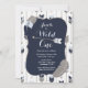 Vild EN första födelsedagsfest för stam- pilar som är marinblå som är ljus - blått och grå färgBoho inbjudan.