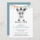 En söt vattenfärgsräv "vild ett"-tematpojke födelsedagsfest inbjudan med party flagga.