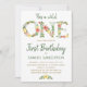 Vild Ett blommigt-typografi-skript 1:a födelsedag Inbjudningar