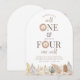 En 1:a och 4:e gemensam födelsedagsinbjudan med akvarell-lejonansikten och neutrala safari-blad längst ner. Perfekt för din 'Vilda etta' och 'Fyra Alltid Vild' safari-inspirerade födelsedagsfest!