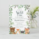 Fira den blivande mamman med denna söta Vilda Ett Skogs barnkalas design. Denna design har en kant av grön lövverk och söta djur som en hjort, tvättbjörn, björn och räv. Du kan anpassa detta ytterligare genom att klicka på "PERSONALISERA" knappen. Matchande föremål i vår butik för ett komplett festtema. Omslagsfotot har utformats med hjälp av resurser från Freepik.com.