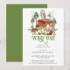 Vild ett tema är en förändrad skogsmark 1:a födelsedag för pojkar eller flickor. Magisk jättemusch, skogsdjur och träd, vattenfärgsinbjudan. Fast grönt på baksidan av inbjudan.