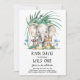 Skapa en drömmande djungel äventyr med den här fantastiska vattenfärgen Vild Ett jungeldjur på födelsedagen. Utformningen har en söt baby-tiger, en mjuk elefant, en lekfull apa, fjärilar och en mjuk djungelgrej med delikat blå blommigt. Denna häpnadsväckande safari-inbjudan är perfekt för en Vild 1 firande eller en naturinspirerad födelsedag. Stil ger ett litet och modernt intryck på vilket safari Jungle-Temaparty som helst. Mammor kärlek hur lätt det är att anpassa sig och hur lätt det är att ange tonen för en snyggt, djungeltemeterad händelse. En vacker plocka för pojkar och flickor i åldern 1-5 år!