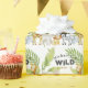 Den här inslagna pappra bilden av djungeldjuren med ditt barns namn och ord "Vild 1". Det är perfekt att lägga till den speciella beröringen till födelsedagsfestens dekorator.