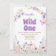 Vild En inbjudan till Wildblomma första födelsedagspartiet Wildblomma första födelsedagsinbjudan - Vild 1 - Första födelsedagsinbjudan för flicka - Naturblommor fjärilar