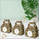 En presentbox med ett stilrent mönster. Exotiska svarta leopardfläckar på en guldbakgrund. Vild men elegant stil. En vit cirkelram med falsk guld foliekanter överst med din personliga text inuti.