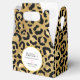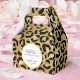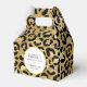 En presentbox med ett stilrent mönster. Exotiska svarta leopardsmutsar på en guldbakgrund. Vild men elegant stil. En vit cirkelram med falsk guld foliekanter överst med din personliga text inuti.