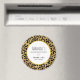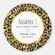 En möhippa tack-magnet med ett stilrent mönster. Exotiska svarta leopardfläckar på en guldbakgrund. Vild men elegant stil. Lagd överst är en vit cirkelram med en falsk guldfolie-kant, med din personliga text inuti.