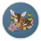 En baby-hjort-gräs som grävs upp till vild blommor och svampar finns i bakgrunden av blått