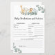 Vi presenterar vårt spännande spel för "Baby Shower Baby Predictions and Advice"! Bläddra på en spännande safari-djungel äventyr när vilden kommer in i världen, och förlovad dina gäster i en roligt och interaktiv aktivitet fylld med baby-prognoser och hjärtliga råd. Vårt spel har en härlig "Vild ett är på vägen", safari djungeltema som ger dig lite upphetsning och förväntan till din babydusch firande. Det vibrerande färg, lekfulla djurillustrationer och lush djungelblad skapar en visuellt fängslande utformning som kommer att slå in dina gäster i äventyrlig atmosfär. Spelet lakan uppmanar gästerna att göra sina prognoser om baby, t.ex. gender, födelsedatum och unika egenskaper. Det ger också gästerna möjlighet att sina hjärtliga råd till de blivande föräldrarna och erbjuda ord visdom och stöd när de påbörjar sin föräldraresa. Vårt spel lakan är utvecklat med högkvalitativ papper och ger dina gäster en smidig skrivupplevelse. Den generösa storleka ger gott om utrymme för skriva av deras förutsägelser och råd, skapar det lätt att läsa och vårda efteråt. Spelet "Baby Predictions and Advice" Pappra Lakan tillför en interaktiv och engagerande inslag till din babydusch. Det uppmuntrar gästerna att delta, vilket främjar en känsla av uppståndelse och förväntan när de sina insikter och välmående önskemål. Öka din babydusch med vårt "Baby Shower Baby Predictions and Advice" Game Papprare Lakan. Beställ nu och förvandla ditt evenemang till en safari-djungelextravaganza som lämnar ett bestående intryck på dina gäster. Låt andan av äventyr och gemensamma förutsägelser skapa en oförglömlig upplevelse när man firar den förestående ankomsten av vilden!