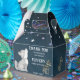 Vilden födelsedagsfest med låg varg en personligs favärde box , söt valp av varg mörk stjärnnattbakgrund.