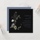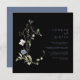 Den här vilden är blommigten svart bak och formell bröllopsinbjudan är perfekt för ett målbröllop. Den här designen har hand-målade vattenfärger, vita och blå vild, skogsblommor med grönt i svart bakgrund. Spara papper genom att på baksidan av inbjudan ange mer information i stället för på ett separat visitkort.