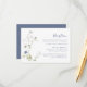 Den här vilden är ett mottagningskort för blommigt på skogshuggning, perfekt för ett bröllop. Den här utformningen har handmålade vattenfärger, vita och blå skogsblommor av vild med grönt bladverk.
