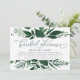 Den moderna vintern botaniska inbjudningskort för möhippan har en överkant och grund gräns av lush vattencolor grey i rik shades av jägare och grönt av skog, med dekorativa typografaccenter och rökblå grått-bokstäver. Anpassa till önskad inbjudningskort för möhippan-formulering med hjälp av mallen fält. Designad för att samordna med vår Vild Meadow and Vild Forest-inbjudan och våra pappersinsamlingar.