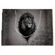 Vild Grace: Strunta porträtt i en lejon i svartvitt. Den lejona, tjocka, flytande manen är bildens mittpunkt och varje hår verkar vara noggrant utformat, ge bilden till ett dynamiskt djup. Lejona ögon skiner i en varm, gul nyans som skapar en fascinerande kontrast till den annars monokroma färg-paletten. Kombinationen av de feta svarta och vita tonerna samt den ljusa bärnstensfärgade skapar en harmonisk balans mellan styrka och nåd.