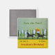 Anpassa den här färgfulla magneten med din händelse, namn och datum! Två hästar på vilden knullar över fält av gräs, med berg, gräs träd och en solnedgång. Ett rand med gyllene gulter med datum och namn kan anpassas. Från ett originalkonstexempel från Minerva Bloom för Angela Piraino: www.angelapiraino.weebly.com