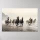 Vild hästar på en foggy strand poster