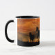 Den här prisbelönta bilden har en massa hästar i skymningen med sydvästra färg i burken i himlar. En vacker häst mugg.