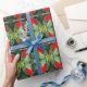 Den färgstarka mönster på denna Wrapping-Papper är gjord av ett originalfoto av MaeFlowers av vild hibiscus, som växer i en slump längs en flod i Florida. Bilden upprepas för att bilda mönster. De ljusröda blommorna och deras grönt löv är perfekt färg för denna helgdag-förpackning. Det finns en vit text som lyder "merry lycklig lycklig merry" som fortsätter över hela designen. Detta är inställt på att anpassa eller ta bort om du vill.