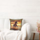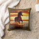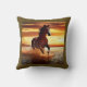 Dekorativ kudde i ett porträtt av en vacker vild häst som gallopar genom surfan, mot ett solnedgång himlar
