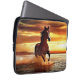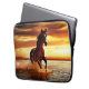 Laptop sleeve i ett porträtt av en vacker vild häst som gallopar genom surfan, mot ett solnedgång himlar