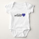 Denna barnrumpa har frasen "Vild i hjärtat" som förmedlas av ordet "vild" följt av @-symbolen och ett blått hjärta.