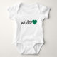 Denna barnrumpa har frasen "Vild i hjärtat" som förmedlas av ordet "vild" följt av at-tecknet och ett kellygrönt hjärta.