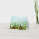 Det här jordgubbskäggiga tackkort-kortet har små gult-knackor, blå glöm-noter, en enda daisy och en mängd små, mogna, röda jordgubbar som går ut från vildens jordgubbsplantor vid kortets nedre gräns - bakgrunden är en grönt från fält till himlar blå vattenfärggradient från katz_d_zynes | Del av katzdzynes' Jordgubbar och Wildblommor samlingar > https://www.zazzle.com/collections/119185498872390969