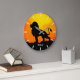 Vild lejonssilhuett, kalligrafi och soluppgång på en djungelväggklocka. Lejonet är en kraftfull symbol för mod! Förverkliga dina drömmar!