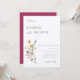 Vild Meadow Blommigt, bröllopsinbjudan. Färgfärgad vildblombukett med koordinerande magenta färg-stöd.