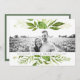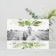 Tack vare det botaniska bröllop-kortet i den moderna grönten finns det ett överst och grund gräns med lush-vattenfärgsgrej i skogar och brinnande grönt, vilket gör att ditt favoritfoto från bröllop är inramat. Anpassa med namn och bröllop-datummarkeringen "kärlek och tack" i grått-bokstäverna. Lägg till ditt personliga förtryckta meddelande på motsatt sida med en motsvarande botanisk grönt. Designad för att samordna med vår Vild Meadow-inbjudan och vår skrivbordssamling.