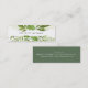 Chic botaniska affärskort i en papper mini-storlek egenskap ditt namn eller företaget namn som flankeras av en överkant och grund-gräns av målat vattenfärg botaniskt löv i rikens skuggor av grönt. Lägg till kontaktinformationen för fullt på grönten Skog i vitt. Ett unikt val av elegant för landskapskonstruktörer, landskapsarkitekter, florister och grönt företag.