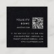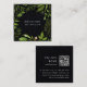 Chic botaniska affärskort i ett unikt kvadratiskt format har ditt namn eller företaget namn, omringat av ett runt gräns av målat vattenfärgsbotaniskt löv i rik av grönt. Lägg till kontaktinformationen för fullt på baksidan i vitt på en luxes svarta kartong, tillsammans med en QR-kod för anpassadet. Ett unikt val av elegant för estetiker, hudspecialister och alla företag med grönt, natur eller hälsa.
