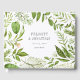 Inbjudan era gäster från bröllop till önskemål och visdom med den här chicen botaniska gästen bok, med ert namn och bröllop-datum omgivet av en andning av grönt vattenfärgsbotaniskt löv. Anpassa ryggraden med ytterligare anpassningsbar i vitt på färsk grönt. Designad för samordning med vår Vild Meadow bröllop samling.
