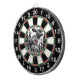 Kraftfull cirkelformad teckning av en älg i en trädbevuxen skog med målinriktning.