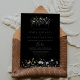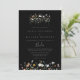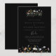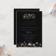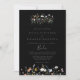 Den här vilden multifärgad blommigt svart spanska bröllopsinbjudan är perfekt för ett rustiskt bröllop. Utformningen har vattenfärgsblommor, blommor, lila-, marinblommor och vit elegant med emerald grönt löv i mörkens bakgrund.