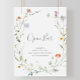 Den här vild multifärgad blommigt bröllop öppna tecknet pub är perfekt för ett rustiskt bröllop. Utformningen har vattenfärgsblommor, rosa, lila, marin och vit elegant med emerald grönt löv.