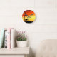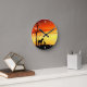 Vild Mustang Mare och Foal Silhouette med solnedgå Rund Klocka