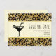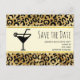 Spara datumet för bachelorette-partiets vykort med ett snyggt mönster med exotiska leopardpunkter i svart på guld bakgrund. Ett svart martinistiskt martinistiskt glas tillför lite party flair till konstruktionen. En rektangel med gräddfärgad ram med en faux guld-folie gräns överst med personligen inuti.